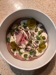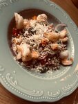 Безвкусный ризотто, неправильно сваренный. Мидии «хрустят» на зубах. Креветки потеряли консистенцию (явно были перемороженные) Томатный суп - просто подогретая томатная паста. Паста весьма посредственная (а-ля столовские макароны), тунец поверху нее норм, но вкус пармезана все напрочь перебивает Вино неплохое, за 600р за бокал пойдет) В общем печально выброшенные 3 тыс рублей Атмосфера еще ничего, крем для рук вкусно пахнет Но на моменте дегустации принесенной пищи мой мир остановился и канул в бездну разочарования * после нашего комментария на вопрос официанта «Понравился ли суп?», были удостоены ответа Я понял