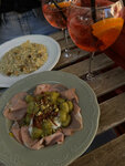 Июньский субботний день, летняя терраса, освежающий апероль шпритц, лёгкая и вкусная паста с креветками, и куда без десерта. Тирамису) Очень приятный персонал, комфортное и лёгкое обслуживание. Впечатление очень хорошее, спасибо 🙌
