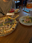 О это моя любовь. По крайней мере тот один раз, что я там была, мне понравился😃 Пришла к открытию, была единственной гостьей, официант стал проверять, не забронировано ли. Что? Весь зал в 12 дня?) 7 марта, пятница, якобы может всё забронировано. Ну допустим, хотя сомневаюсь) Далее сказали, что пиццу нельзя, остальное можно, расстроилась 😞Ведь пришла за пиццей. Выбрала бургер, сказали, что бургер нельзя, а вот как раз пиццу всё-таки можно 🤯😅 ну ок. Всё было ооочень вкусно🤤 Пицца с трюфельным соусом, грибами и чем-то еще просто шикарная! Салат с креветками и киноа тоже оч понравился. Но пицца 🍕 🔥 👍🏻👍🏻 Обязательно вернусь попробовать что-нибудь еще. Есть лавочка-магазин с сырами, маслом и всякой всячиной. К счастью, цены норм, а не конские. Спасибо! PS: были уже 4 раза. На др поздравили тирамису со свечкой🥰 как мило, спасибо большое. Тирамису я не люблю, но этот мне оч понравился 😘