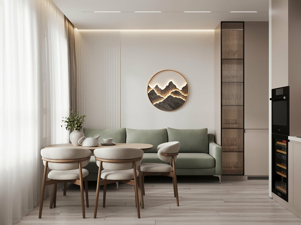 Сразу нашли с дизайнером взаимопонимание. Он предложил совершенно неожиданные, но смелые решения, которые были и функциональными и эстетически привлекательными. Получилось удачно расположить встроенные шкафы, которые визуально растворились в пространстве. Увеличили площадь кухни-гостиной за счет перепланировки. Выделили рабочую зону под кабинет, хотя раньше казалось, что это не получится сделать. Подобрали очень приятные цвета интерьера и интересные материалы для отделки стен. Все очень понравилось!