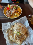 They cook very tasty, large portions, the barbecue is excellent, I also liked the rustic chicken with fresh crusty bread. 10% service is included. There is a discount on takeaway, sometimes we took food with us to the hotel. Of the cons, there were a lot of flies, plus you can update the menu with new ones. Some positions were often missing. The service is fast, the wait is not long 10-20 minutes. We ate only in this cafe, there are a lot of people eating here, especially in the evening.