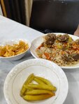 Откуда Яндекс узнал, что я тут был? Хм... В общем, заглянули пообедать, захотелось шурпы или чего-то узбекского. Заказали по меню, а нам принесли совсем другое и в два раза больше еды. Моя порция состояла из половины курицы и овощей. Как мы не отмахивались, девушка настояла на том, что это и есть наш выбор. Пришлось согласиться, тем более что нам ещё чайник чая принесли бесплатно. В общем, наелись до отвала. Набрал я в Яндекс переводчике благодарность по-узбекски, произнёс, а главный на кассе говорит по-русски: по-узбекски мы тоже понимаем. В общем, очень щедрые люди. Рахмат