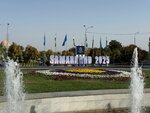the walking area, the Tamerlane monument by the fountains, the area is green, lots of trees, everything is clean and lots of urns. it's clear that they take care of it, it was nice to walk