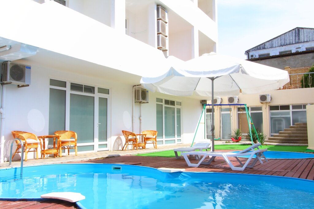 Реальность не соответствует фотографиям. Бассейны маленькие, при всем желании взрослым там не искупаться, подогрева нет, уже в 15:00-15:30 вода была прохладная, так как солнце уходило и появлялась тень. Столы на территории грязные, уставшие, неудобные, никаких столиков с зонтиками нет. В номере, что на 4х человек, одна кровать была низкой и твердой, телевизор не работал. Никаких правил у отеля нет, дети орут до часа ночи, администратору и родителям нет дела до этого. Кухня странная, во-первых, граничит с кухней от столовой отеля (и отделена всего лишь шторкой, условия явно требуют проверки), во-вторых, находится по коридору с «вип-комнатами», по которому нельзя ходить, чтобы не мешать жильцам, ходить на кухню можно было только через улицу, чего никто не делал. Кстати, эти вип комнаты были на этаже с местом приема пищи и с детским уголком, дети постоянно орали и бегали с улицы и в отель, а люди ели и соответсвенно шумели, ни о каких «вип» условиях и речи быть не может. Администратор странная, когда мы вошли, она была занята другими жильцами, поэтому просто встали в очередь и начали осматриваться. И она, закончив разговор с людьми, не поздоровалась с нами, а просто сказала: «так, поворачиваемся ко мне!» Это что 😂 Из 6 забронированных дней пробыли там всего 1, просто не хотелось оставаться и омрачать себе отпуск. С нас хотели еще взять деньги в размере одной ночи, но это незаконно и в ходе разговора они никакими доводами не смогли обосновать такой штраф (ну, потому что таких доводов законом не предусмотрено), поэтому ладно хоть вернули полную сумму за оставшиеся 5 дней.