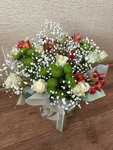 В составе 9 французских роз в классическом красном цвете. По желанию можно выполнить композицию в любом другом цвете из коллекции. И дополнить воздушными шарами и открыткой.