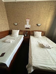 Приятная администратор по звонку забронировала нам номер. Очень кстати. Когда мы приехали через пару часов заселиться, уже оставалось всего несколько мест в хостеле. Отель пользуется спросом. Многие, слышала разговоры, останавливаются здесь не первый раз. У нас была комната с 2 кроватями, администратор сказала, что полуторка. Но по мне, так гораздо больше. Мы с мужем спали на одной, даже не касались друг друга 😁 На второй спал брат. Всё чистенько. В ванной душ, раковина, унитаз. Всё в этой же комнате, никуда ходит не нужно. В комнате телевизор и чайник, кружки.