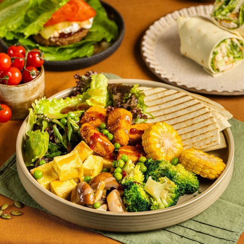 Пита с индейкой гриль, свежим огурцом, черри и кинзой. Заправлена соусом ранч
