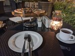 Плюсы: атмосфера отдыха, приятное обслуживание, классная веранда, понравился куриный кебаб, хорошая чайная коллекция, хороший выбор в меню, работают до поздна Минусы: сухой бараний кебаб, не понравился соус к нему, пицца мясной пир не зашла по тесту и начинке, просто пицца, никаких эмоций
