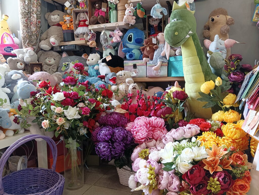 Уютный магазин с кучей милых мягких игрушек, всегда есть готовые букеты -зашёл, выбрал и готово. Шары с гелием продержались больше 2х недель! Приветливый персонал. Доставка. Всё устраивает)