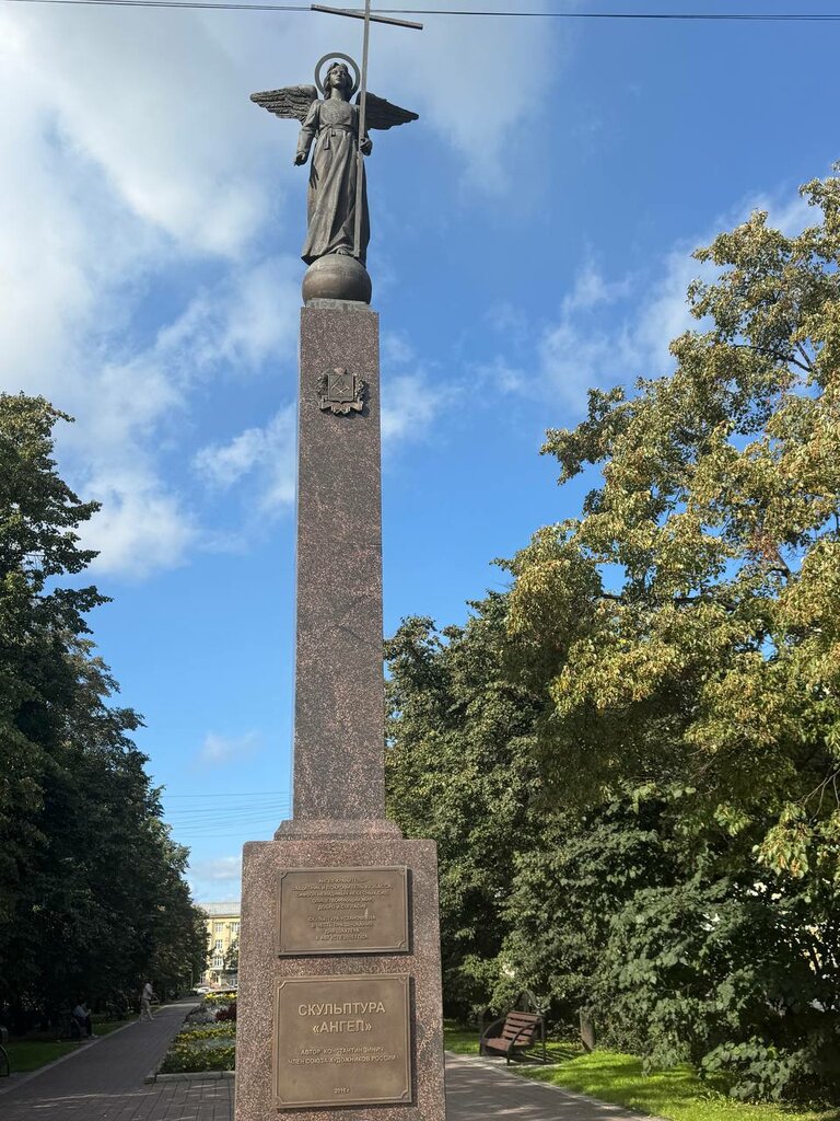 Над городом парит ангел, защитник города. Когда его ставили шёл утром мимо на работу. Поднимаю голову и вижу Ангел летит. Аж слезы полились. Очень нравится эта скульптура!