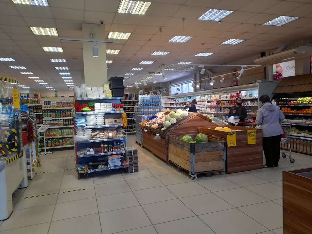 Чистота, приветливые сотрудники, большой ассортимент продуктов питания и бытовой химии. Выпечка вкусная, люди стараются чтобы покупателям было вкусно. Здесь можно для себя найти то что нужно.