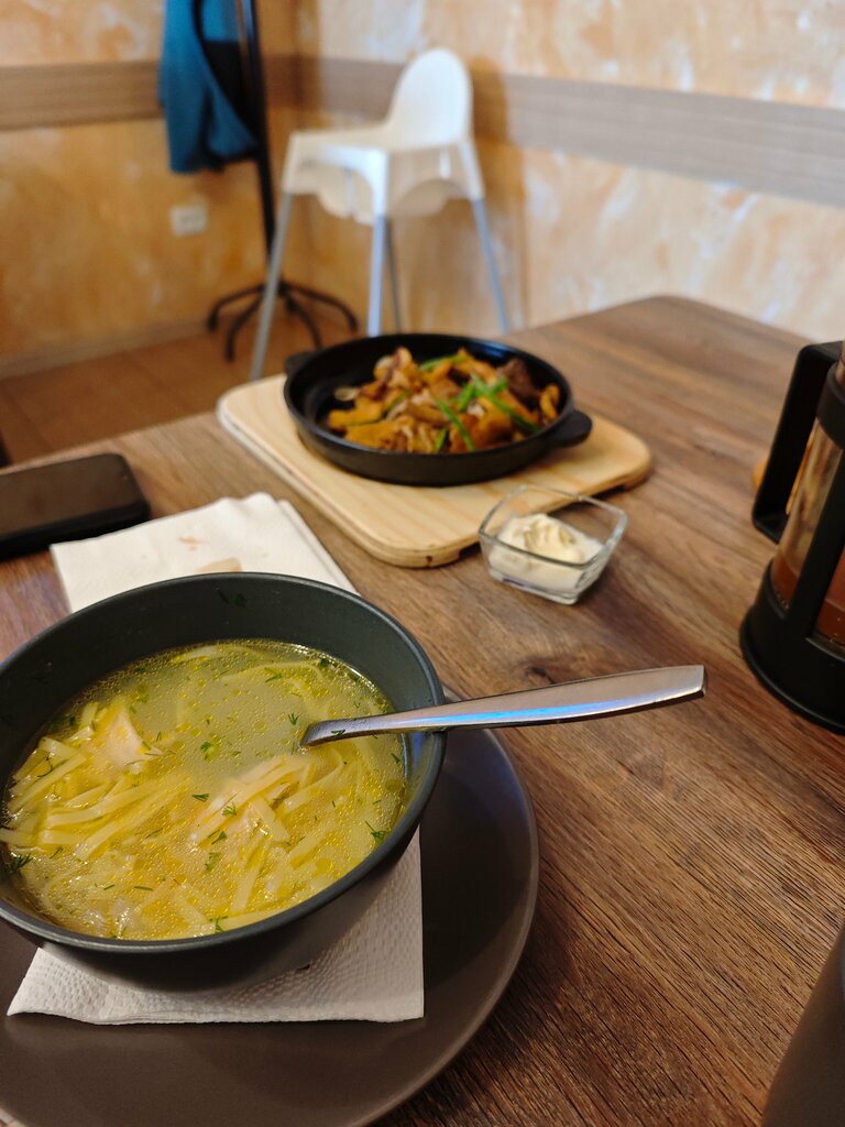 A wonderful cafe! A good menu, the quality of the dishes is excellent! We ordered chicken teryaki with rice, soup, pancakes with sour cream, everything is fine! Tables, appliances are clean, the service is good! A clean toilet. Fast service.