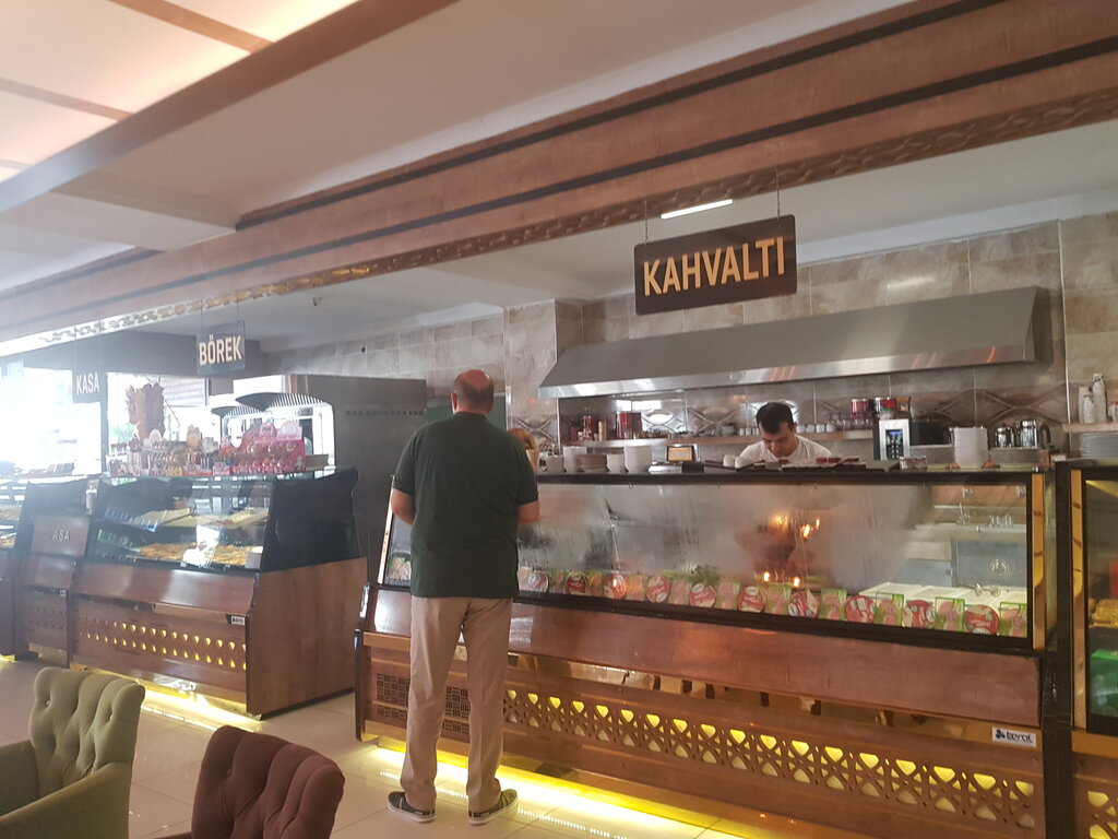 Чистое, современное место, где можно перекусить в дороге (располагается около магистрали Алания-Анталия). Также подойдёт для семейных походов или дружеских посиделок на досуге, особенно если живёте или отдыхаете в Манавгате, Сиде или близлежащих турецких посёлках. Меню довольно разнообразное. Много свежей выпечки. Мы заказывали завтрак на 4-х. Из напитков выбрали свежевыжатый апельсиновый сок. (Отличный оказался!) Порционно принесли тарелки с сыром (2вида), оливками(2вида), овощной нарезкой, отварным яйцом. И, конечно, симиты. Эти традиционные турецкие калачи, обильно обсыпанные кунжутным семенем, здесь особенно свежие, хрустящие, а по форме симитное кольцо шире в диаметре, чем продают на турецких улицах симитчи - продавцы симитов. Кафе называется Ankara simitı ("Симиты из Анкары".) Видимо, в турецкой столице именно такой готовят эту знаменитую национальную выпечку. Кстати, наш заказ обошёлся нам в 160 лир(!) = 10$. Место рекомендую.