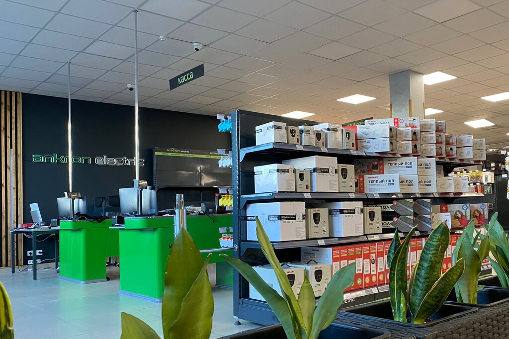Богатый ассортимент (розетки, лампочки, щитки, автоматы, счётчики, тёплые полы, ночники, кабели, инструменты, расходники ещё кучу всего), приятные цены, вежливый квалифицированный персонал. Удобное расположение, с парковкой авто проблем не возникло.