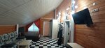 Отличный гостевой домик! снимал помещение на первом этаже, высокие потолки, две двухспальные кровати, диван,санузел мне нравится, фактура деревянного бруса, отопление напольное было тепло ногам