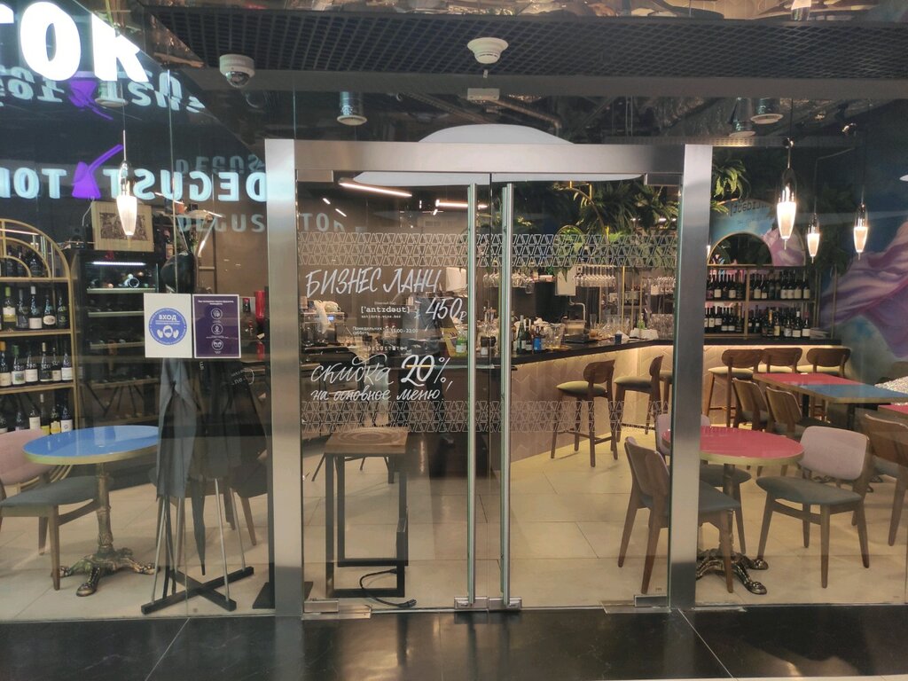 Уютная атмосфера, не выходя из Федерации. Интересный выбор вин. Наценка невысокая, что приятно удивило. Рядом фудкорт с разными корнерами
