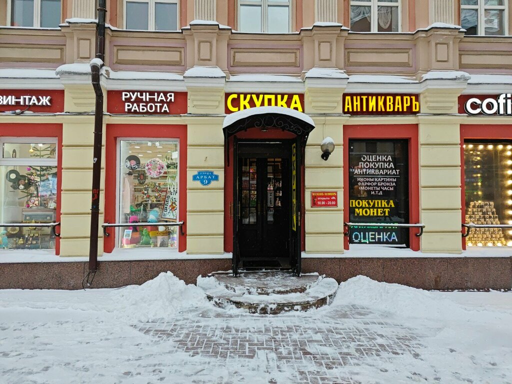Качественный антикварный салон, вежливые , грамотные профессионалы своего дела, широкий ассортимент, подробно проконсультируют по любому вопросу , рекомендую к посещению если будете на Арбате