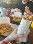 A great place if you don't want to overpay at the water park for food, walk for 7 minutes. There are deniers with a menu prefix, there are potatoes and a drink as a gift. You can ask them to pay in dollars, they just watch the official exchange rate without any surcharges. The food is delicious, the staff is polite. There is even a cool guy from Azerbaijan who is happy to visit this place.