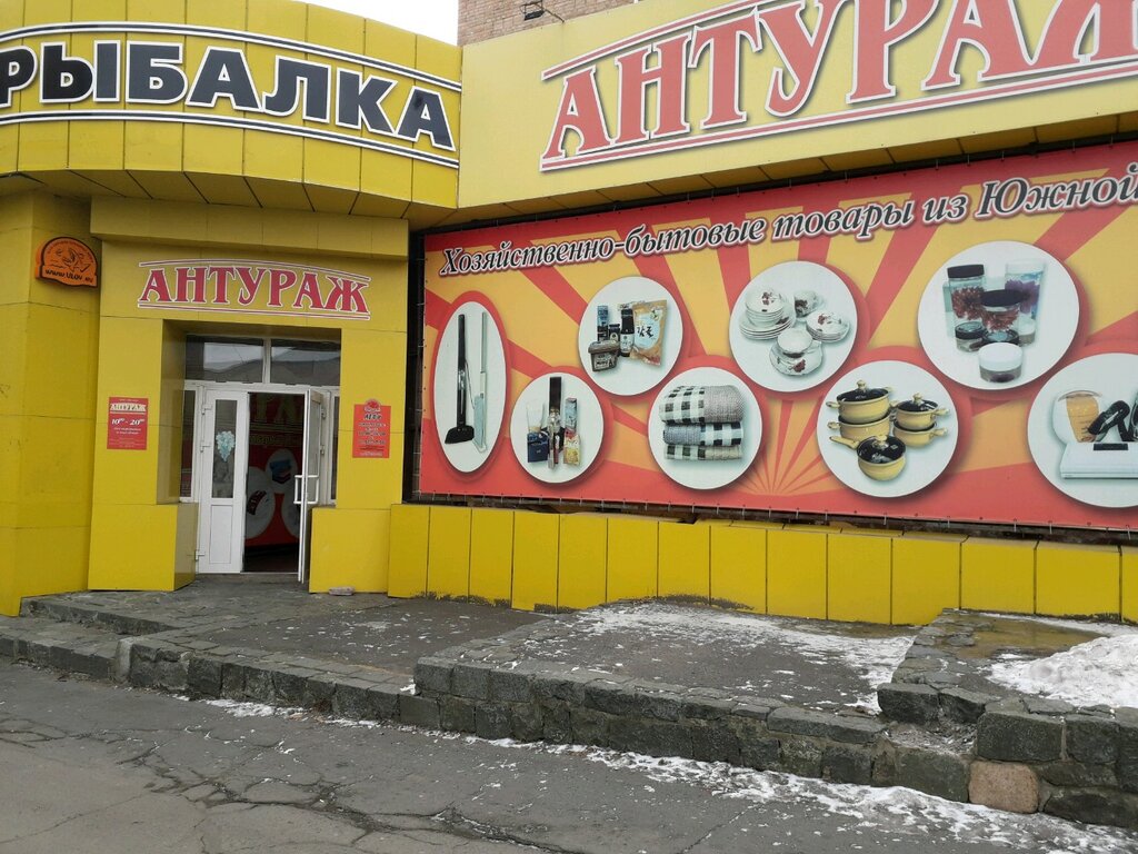 Магазин Антураж торгует различными товарами от одежды до хозяйственных мелочей. По соседству на этаже находиться магазин для рыбаков.