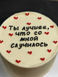 Заказывала бенто-торт с начинкой трюфель. Максимально простой дизайн тортика, девушка вежливо ответила на все вопросы в контакте. Я попросила надпись сделать более четче изначально. По итогу в день, когда забирать мне присылают фото торта с сообщением «Ваш заказ готов», где я вижу орфографическую ошибку в надписи. Торт забирать через пару часов, я на панике, плюс надпись вообще плохо сделано. Кондитеру явно нужно отточить мастерство аккуратного написания. Сталкиваюсь уже второй раз с этим, в первый раз подруге делали торт, некоторые слова было не прочитать. Мне пошли на встречу и изменили надпись. Я потребовала скидку, на что получила отказ, ведь мне все исправили. Положили в подарок два макарона. Интересно положили бы их, если бы я не заявила о скидке. Начинка трюфель меня не сильно впечатлила - очень простовата. Но это дело вкуса. Снимаю звезду за то, что торт был сделан с ошибкой, изначально ТЗ не было выполнено идеально. Хорошо, что я вообще прочитала, что было написано на первом варианте. Всё-таки мне кажется, что не такая уж и сложная фраза, чтобы в ней допускать ошибки.