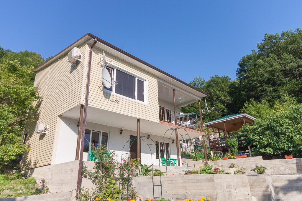 Отдыхали в июле. Гостевой дом находится на возвышенности метров 600 от моря. С балкона красивый вид. Нам достался номер с хорошим ремонтом, новой сантехникой, плазмой. Понравилось постельное белье (не дешевая бязь). С хозяевами были добрые отношения. Если какие вопросы и возникали, их оперативно решали. Цены приемлемые, адекватный трансфер. В самом поселке много столовых и кафе (обошли все). Что-то больше понравилось, что-то нет))) В целом, хорошее место для семейного отдыха