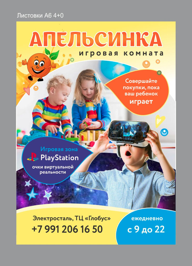 Были с ребенком 5 лет в Апельсине, давно просился, сыну понравилось, не масштабно, но спокойно можно поиграть , не толкаясь, все для игры есть и посидеть порисовать и побегать полазить. Туалет есть. Большой плюс. Планируем отмечать день рождения. Цены очень приемлемые