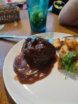 Место может и приятное, но качество еды оставляет желать лучшего. При отсутствии народа, стейк готовили почти час, результат на фото 🤣🤣🤣, а в бефстроганов половина порции лук! Морс сильно разбавлен водой!