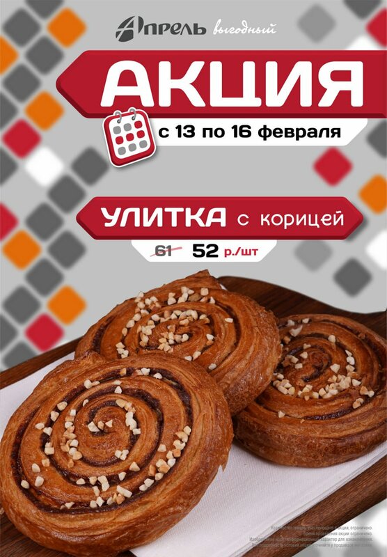 Здравствуйте. Плюсы: Сеть имеет достаточно широкое представительство торговых точек и магазинчиков, что весьма удобно. Продавцы в торговых точках всегда одеты в фирменную униформу, ведут себя вежливо и любезно, обслуживают покупателей хорошо. Качество продукции за многие годы пользования магазинами этой сети, нареканий не вызвало: всегда все свежее и вкусное. Цены на товары в последнее время в сети выросли, но учитывая качество продуктов, а также этого производителя магазин а Апрель ( особенно в том случае, если вы целенаправленно ее и ищите для осуществления покупки). Минусы: 1). У сети нет мобильного приложение, с помощью которого ежемесячно можно выбрать три продукта с 10% скидкой, а также накопить баллы, которыми можно оплатить частично покупку в соотношении 1 балл = 1 рублю. Баллы при этом, не имеют срока их действия. Мне такая бонусная программ нравится. 2). Кассы самообслуживания нет ( приходится ждать когда подойдёт второй кассир).