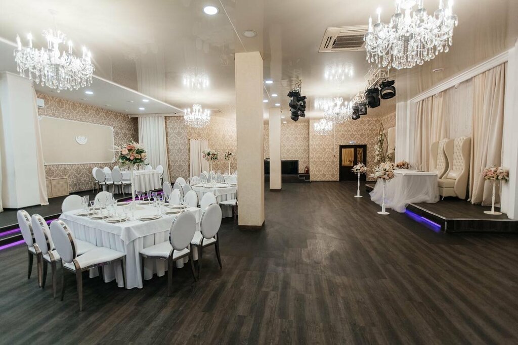 Самые крутые банкетные залы в Барнауле. Красивое оформление, достойная цена. Брали зал вместе с арендой декора, столовым оборудованием, большой ассортимент. Отличное освещение, видно каждое украшение.