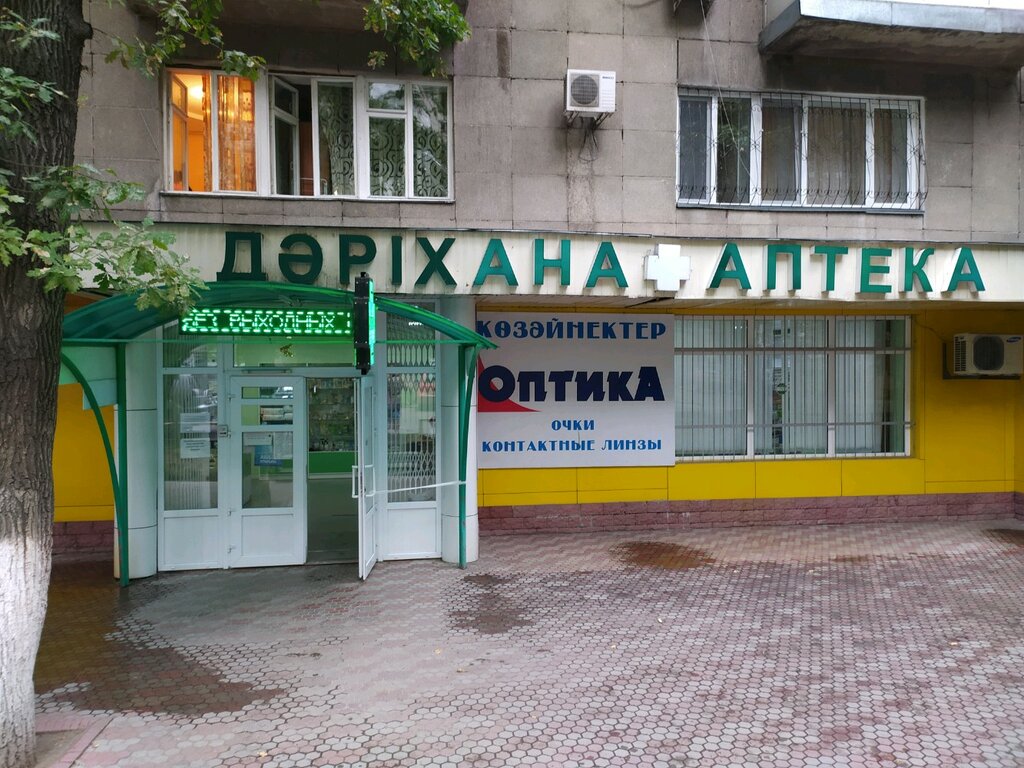 This is a good pharmacy. Everything you need is there. Something exceptional is possible and missing. Friendly pharmacists. They are patient and will always help you figure out the recipe. They even helped me save money once by offering me a good replacement. If there is a small department of baby food and necessities for the child, including nipples and bottles. There are herbs, creams, toothpastes, sweets with fructose. In the room itself there is a small department for the sale of glasses (sunglasses, with a small selection of diopters), and also from spring to autumn you can buy an oxygen cocktail. And there is also a reverse osmosis machine. Water, as everywhere else, is 10 tg. liter. As a location for filming in a movie, it is quite simply furnished. For me, the dim lighting and the dull green color of the pharmacy furniture. But it is convenient to accommodate the filming equipment and the group. There is even a place to put a playback, due to the spacious hall.