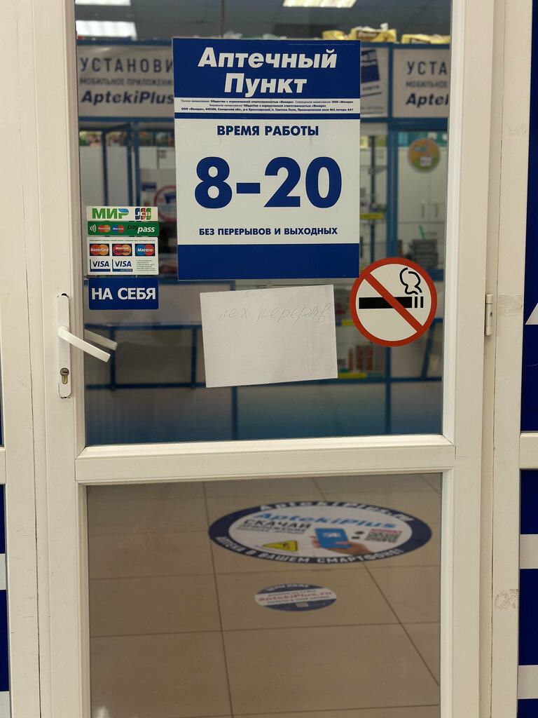 Утром сделала заказ в данную аптеку, к 12 дня заказ так и остался висеть в статусе СОЗДАН, приехав в аптеку в 11.47 увидела бумажку ТЕХ. Перерыв, со скольки висит эта бумажка не понятно, но прождав 30 минут так и не дождалась окончания этого перерыва. За это время человек 6 хотели попасть в аптеку, но не судьба. На аптеке написано режим работы без перерыва и выходных.