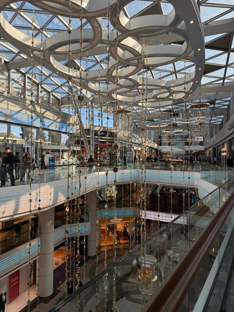 A good shopping center, next to the metro station, as well as after shopping, you can walk along the embankment