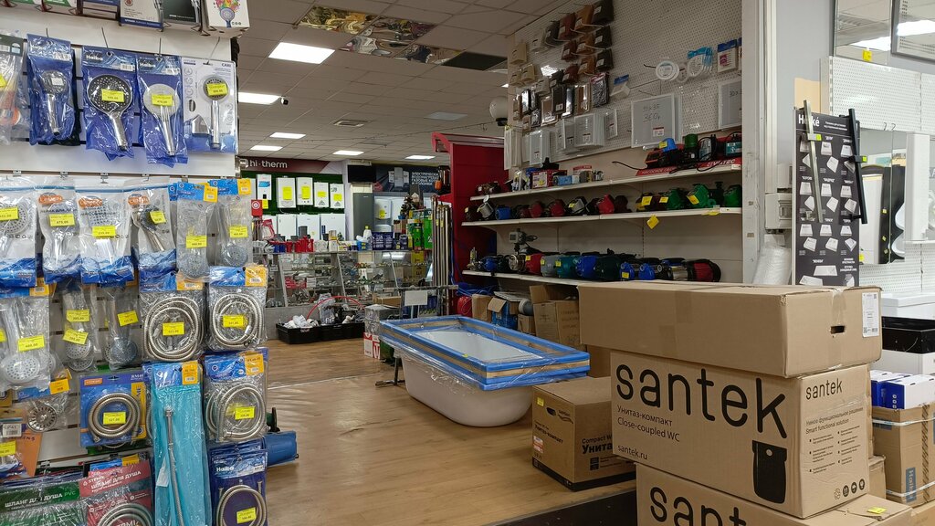 Хороший магазин, приемлемые цены. Широкий ассортимент товаров. Помогут подобрать систему водоочистки, комплектующие и сменные элементы для них. Насосное оборудование, отопительное, водонагревательное оборудование. Ванны, смесителя, раковины, мебель для ванной комнаты. Есть газовые котлы Сармат даже уличные боксы кним.