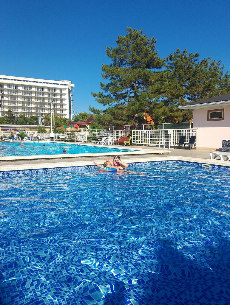 Сказать что нам понравилось , это ни чего не сказать! Место для отдыха просто 🔥🔥🔥 большая красивая территория, детская площадка, мангальная зона, бассейны 😍 Столовая удивила, вкусно как дома и цены очень приятные 👍🏼 Не могу не написать об администраторе Анне, милая, приветливая девушка🥰 До моря 5 минут ходьбы, рядом небольшой парк аттракционов для деток. В доме чисто, постельное белье чистое, полы поскрипывали , но это никак не повлияло на отдых. Теперь точно знаем , где провести отпуск в Джемете, обязательно вернемся!