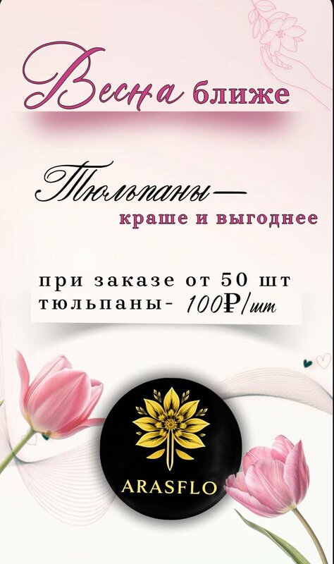 Супер предложение. При заказе тюльпанов от 50 шт. тюльпан 100р за шт. Большой выбор композиций и букетов на нашем сайте https://aras-flowers...