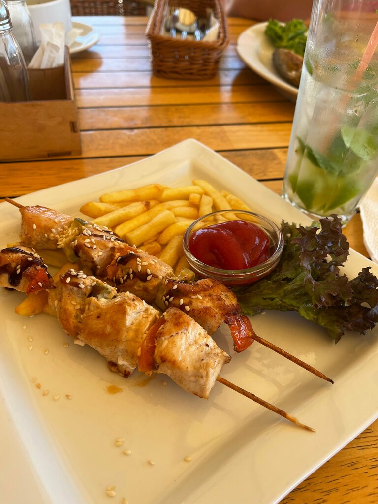 Несмотря на предыдущие отзывы, решили зайти на обед (как никак, год прошел). Обслужили нас очень быстро, девушка-официантка приняла заказ и приготовили все как-то ну очень быстро, мы даже удивились. По вкусу нам все понравилось. А еще тут красивый вид на море. upd: за весь отпуск побывали здесь раза 4 точно, в Курортном это одно из лучших кафе. Всегда все было быстро, только в самый последний раз ждали заказ подольше, но и людей в зале было больше.