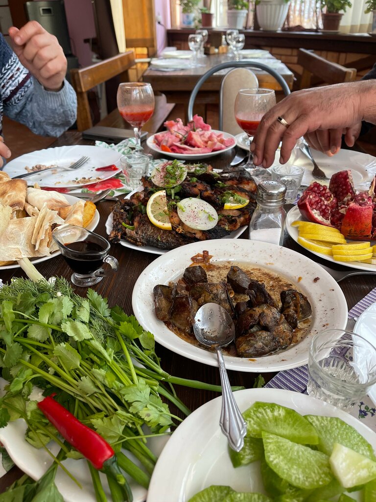 Спасибо большое шевповарам Руслану и Айгуль за их стабильно вкусные блюда, особенно хорош карп на гриле. 4 звезды из-за требующих косметический ремонт помещений!