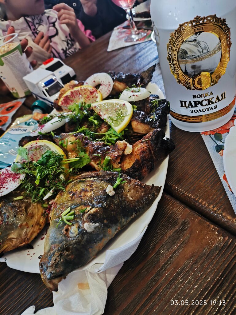 Всё 5 заезд ставлю за карпа на углях!!! Место не "инстанрамное" сразу скажу, но если вы хотите вкусно поесть и посидеть с семьёй то смело рекомендую. Меню очень маленькое, что очень хорошо,это значит всё свежее. Заказ ждали минут 30,сыр и овощи, морс всё ок.