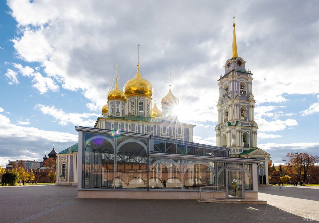 Интересное Археологическое место! За собором зашли в небольшой Археологический музей – «Археологическое окно»: 26 сентября 2020 года на Соборной площади Тульского кремля открылось «археологическое окно», сооружённое на месте каменного Успенского собора XVII века. Открытие приурочено к празднованию 500-летия Тульского кремля. Здесь есть интерактивная информационная система, она позволяет посетителям представить, как располагались слои разных временных периодов, также здесь на месте раскопок - эти слои можно увидеть своими глазами. В центре «археологического окна» находится макет реконструкции первого Успенского храма. В результате археологических раскопок 2019 года было точно локализовано место расположения Успенского собора XVII века. Сейчас его остатки представлены частично разобранными фундаментами здания, кладка которых выполнена из плит местного известняка, а трассы стен сохранились в виде фундаментных рвов. Музеефикация остатков фундаментов позволит жителям и гостям города «прикоснуться» к подлинным остаткам первого каменного храма Тульского кремля, а мультимедийная среда – увидеть, каким был храм почти четыре века назад.