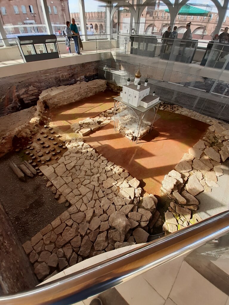 Познавательно, наглядно, интересно.. Для людей, как говорит один известный популяризатор науки "археологического склада ума" вообще полный восторг! Мне как историку, и в далеком прошлом участнику археологических экспедиций, было очень интересно. "Археологическое окно"в виде аккуратной ямы в земле с помостами, перилами, витринами и инсталляциями открыто в 2020 году на месте утраченного двухстолпного пятиглавого кирпичного Успенского собора 17 века. По научному говоря, это "фотореконструкция археологического раскопа с интерактивной информационной системой с макетом реконструкции первого Успенского храма", археологически обнаруженного в 2017-2019 годах. В "окне" можно разглядеть элементы фундамента алтаря и четверика собора возведенного из плитчатого известняка. Пускают бесплатно, кстати, молодцы!