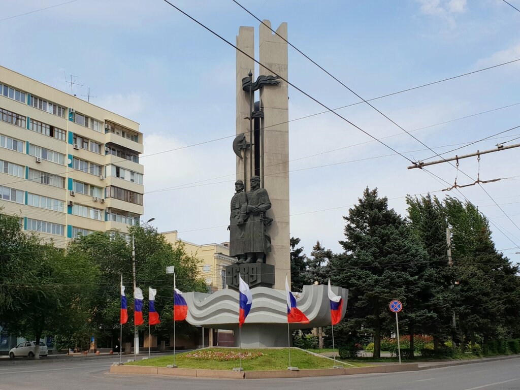 Как понимаю, это стрельцам - основателям города. А я помню, что в первый приезд (ещё в Сталинград) а 1955 году, видел с веранды ресторана "Маяк", где мы обедали, как и где Царица втекала в Волгу.