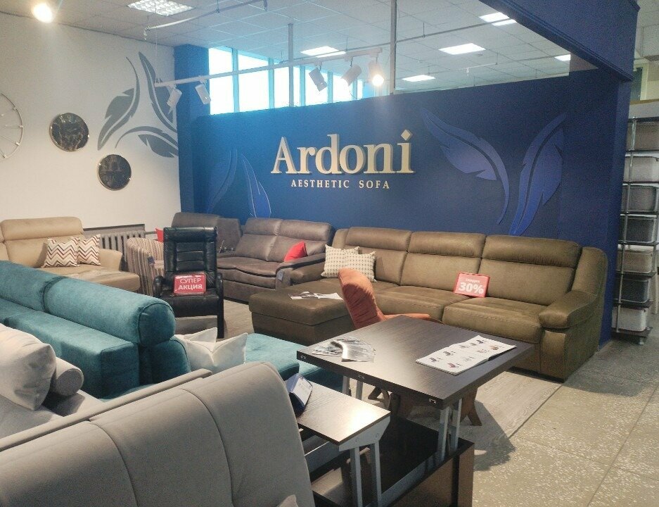 Заказывали в Ардони модульный диван в коттедж, крупногабаритный ( примерно три на два, точно не помню, так как этими вопросами занимался муж). Диван сам по себе достаточно креативный по дизайну, необычный и насыщенный цвет; удобный, классные широкие подлокотники, с широкой строчкой. Правда, ждали мы дольше, чем планировалось дня на три, наверное. Не критично, конечно, но ожидание было мучительно