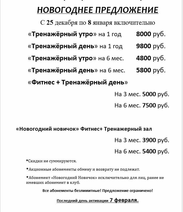 1 pcs.Тренажёрный зал "утро", нахождение в зале ограничено временными рамками, до 16:00 вы должны покинуть зал. Абонемент не включает в себя групповые занятия и занятия йогой.