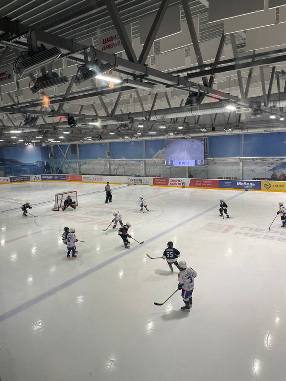 Или отличный комплекс, на втором этаже есть кафе с отдельной зоной отдыха для наблюдения за игрой. Хорошие раздевалки, современная, душ, в некоторых раздевалках есть сауна. Лёд хороший.