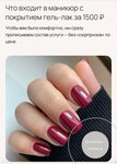 К сожалению, осталась очень недовольна посещением этого салона. Во время процедуры мастер сначала сделала укрепление и покрытие, а потом начала опиливать форму — в итоге спилила часть уже нанесённой базы. После этого сделали дизайн и покрыли топом, но углы остались полупрозрачными, будто без покрытия. На мой вопрос мастер сказала, что «это из-за укрепления», подпилила немного, но переделывать работу не стала. Дома я показала фото своему мастеру из другого города , и она сказала, что мне просто спилили основное покрытие и не стали исправлять работу. Отдельно разочаровала цена: по акции для новых клиентов маникюр с гель-лаком стоит 1500₽. Я показала два референса (френч и дизайн с цветами), сказали, что френч +500₽, про дизайн ничего не сказали. В итоге у меня был не френч, но с меня всё равно взяли 2000₽ без объяснений. Итог: некачественная работа и несоответствие заявленной цене. Возвращаться и рекомендовать не буду.