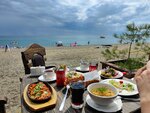 After going around all the establishments around, we stopped at this cozy cafe on the first line. Well, what can I tell you, dear reader, the place is just great. It all starts with pleasant energy and smiles from the staff meeting you. There are many seats, overlooking the sea. Pleasant, soft background music is playing. Next, the most interesting thing, the kitchen is just wonderful. The first dishes are admired by the taste buds and the central nervous system. The portions are decent, the serving is almost restaurant-style. Second courses with a national caloric content and an appropriate flavor set, everything is very tasty. The dishes on the grill are particularly admired. We took almost everything that is on the menu, everything is moderately fried and, very importantly, not dried. The meat is juicy and chews well. Special admiration was brought by the dishes from the fish grill, the trout is simply delicious, and the salmon is some kind of fairy tale. Many thanks to the brazier!!! Fresh bread, which is baked right there and very tasty tea. I would like to say separately about the negative reviews, I advise these comrades to visit another 5-8 local cafes and restaurants and then an objective picture will form itself in their head… Thank you very much to all the staff and owners of this institution.