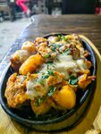 50/50. For lack of places and a choice like this. You can eat there. But it doesn't taste good to me. Yellow chicken cradle. Baked young potatoes, huge sliced baked potatoes were brought. The kharcho soup is not delicious. I didn't like the mushrooms either. Only the boat with egg and khachapuri turned out to be delicious