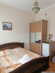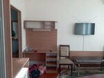 Номер одноместный, кровать с достаточно удобным матрасом, спала с закрытым окном, мне жарко не было, холодильник работал, телевизором не пользовалась, сан.узел и мини ванна совмещены, комната не большая, мне было удобно. Микроволновка на 3-ем этаже, чайник и балон с водой на этаже, посуду можно попросить у администратора. Минус- это отсутствие горячей воды, вода летняя, слегка тёплая, для мытья головы очень не комфортно... Зато рядом, напротив строительного рынка есть прекрасная столовая, где вкусно готовят и очень демократично по стоимости можно покушать. До пляжа далеко, пешком минут 40 минимум... Пляж городской, хороший. А так пять ночей провела в гостинице без напряга. Нет лифта. Я думаю, что цена за номер(2500/сутки) всё таки высоковатая. За 2950/сутки с завтраком и трансфером я ночевала в стандарте двухместном возле аэропорта Домодедово, номер очень шикарный... Так что цена/качество для Арго всё же завышена. Но может быть для столицы курорта это и нормально, не знаю... поэтому поставила четвёрку.