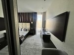 Внешний вид отеля вызвал ассоциации с ковшом экскаватора. Или с Мордором. А вот внутри уютно. Номер понравился. Кресла, диван, пуфик для ног, всё кстати. Единственное замечание: в душевой узковато за счёт полки повешенной именно там где моется тело. Спа зона имеет один очень опасный компонент - это плитка которой покрыты всё полы. Ни какой противоскользящей защиты нет. В результате ходить нужно очень и очень осторожно. На мокром там "навернуться" проще простого. Падения чреваты серьёзными проблемами со здоровьем. Будьте бдительны! Сауна замечательная. За наличие в ней ковриков на пологе и веера - отдельное спасибо. За завтраком явно не хватает дополнительных сотрудников. Работает одна девушка, и ей уследить за всем просто невозможно. Поэтому если на столе что-то заканчивается, надо просить донести. Сам завтрак вкусный. Омлет, блины, творог, йогурт. Общие впечатления от пребывания однозначно положительные. Но настоятельно рекомендую обратить внимание на безопасность плитки в Спа. Желаю успехов!