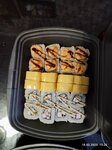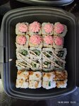 Решила заказать на ДР роллы и пиццу. Жаль фото пиццы не сделала... Начну про роллы, они все разного размера, не сказать что вкусные, так себе, на 3. Кое где нори отходило от риса... Комплимент пицца-ролл вообще отстой, тесто резиновое, начинка деревянная. Походу старая колбаса/ветчина/бекон (так и не понятно что внутри). Заказала 2 пиццы 25 см, сырную и барбекю. Сырная пресная, барбекю походу вкусная, быстро съели)) в подарок сделали пиццу "Цезарь с курицей". Ребята, научитесь резать пиццу на равные куски. Это блин жесть как она была разрезана. Вместо 8 кусков (как должно быть как бы) их было 6! Вообщем я расстроилась, от качества вашей продукции, от комплиментов вашей компании. Не буду у вас больше ничего заказывать. Твёрдая 2.